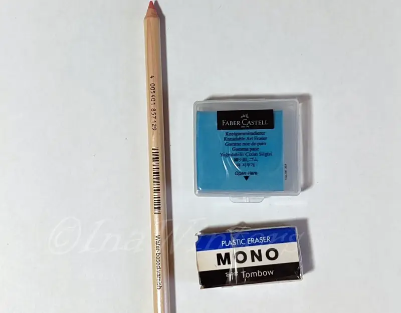 Grundsätzlich kann man mit einem Radiergummi nichts wegradieren. Man kann bemalte Stellen lediglich aufhellen. Für mich sind die Monoradierer dafür sehr gut. Diese gibt es auch in verschiedenen Varianten, wie zb. auch Stiften.